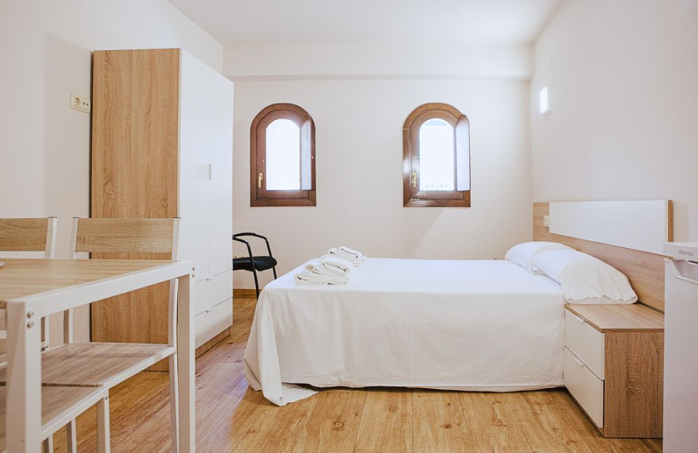 Cocina completamente equipada: nevera-congelador, vitrocerámica, campana extractora, horno, microondas, cubiertos, platos, vasos, sartenes, cacerolas, cafetera, batidora, tostador y otros utensilios de cocina.