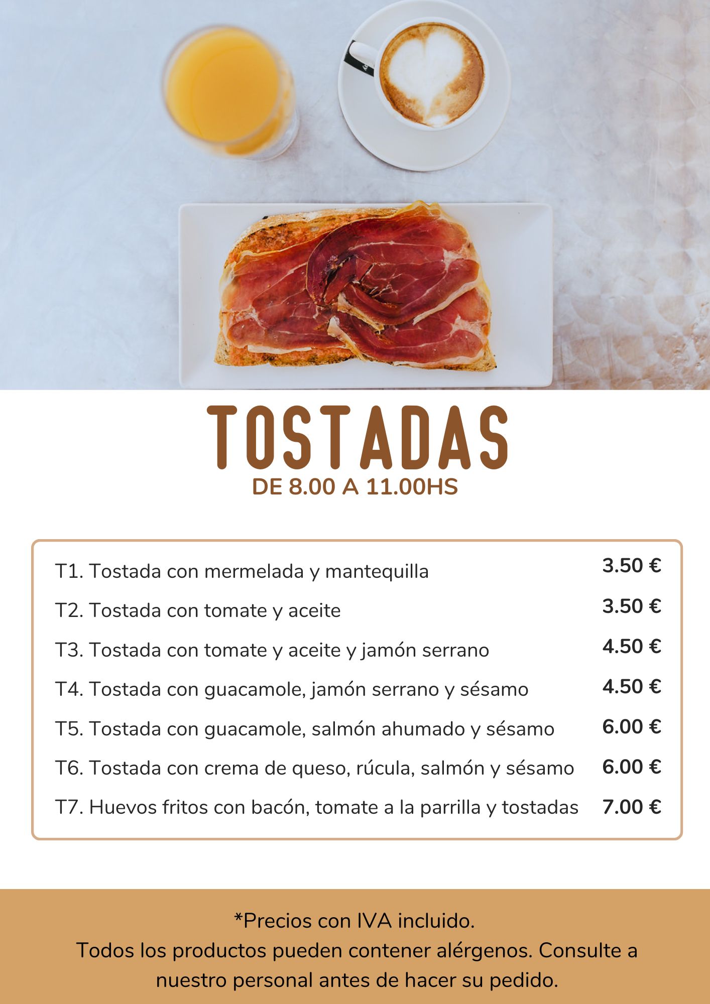 Desayunos de 8.00 a 11.00 horas